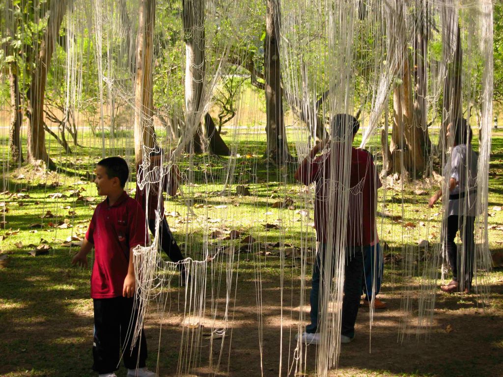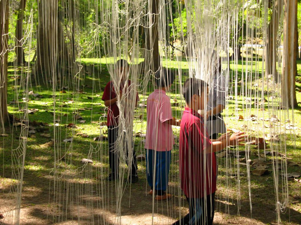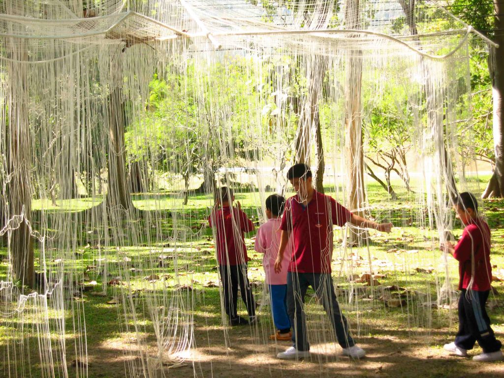 Homelessness’ House is chosen to be a part of ‘From Darkness to light in hand’ which aims to build a bridge between blind children and art through various senses. This project creates a special space for the blind to learn and experience new sensations with no pessimistic attitude from other people, and to allow them to express their creativity without boundaries. The project is divided into many sections; molding, body stamp, storytelling, reading for non-blind and touching art. In each section children, the blind and non-blind, work together to get through tasks, sometime with help from visual person and sometimes the other way around. My project ‘Homelessness’ House’ is a part of touching art section. Together with instructors, the children walk through and touch the art piece freely and I only help them fill their idea about the higher part of the work where they are not able to reach.