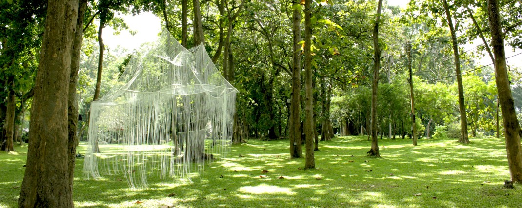 Sometimes, I do not feel that I belong to the place or society that I live in. Stray dogs have become my good friends. We share one thing in common, that we are free spirits, not attached to the environment or the place we stay. Home is a place we live in, physically and mentally. It provides trust, comfort and safety. However, these feelings may lead to an obligation and lack of freedom. In this art work I create space without solid boundaries, using strings to represent the wall. The house is hung up high to create a very soft and light layer around the viewer. This reflects a sense of detachment and freedom.